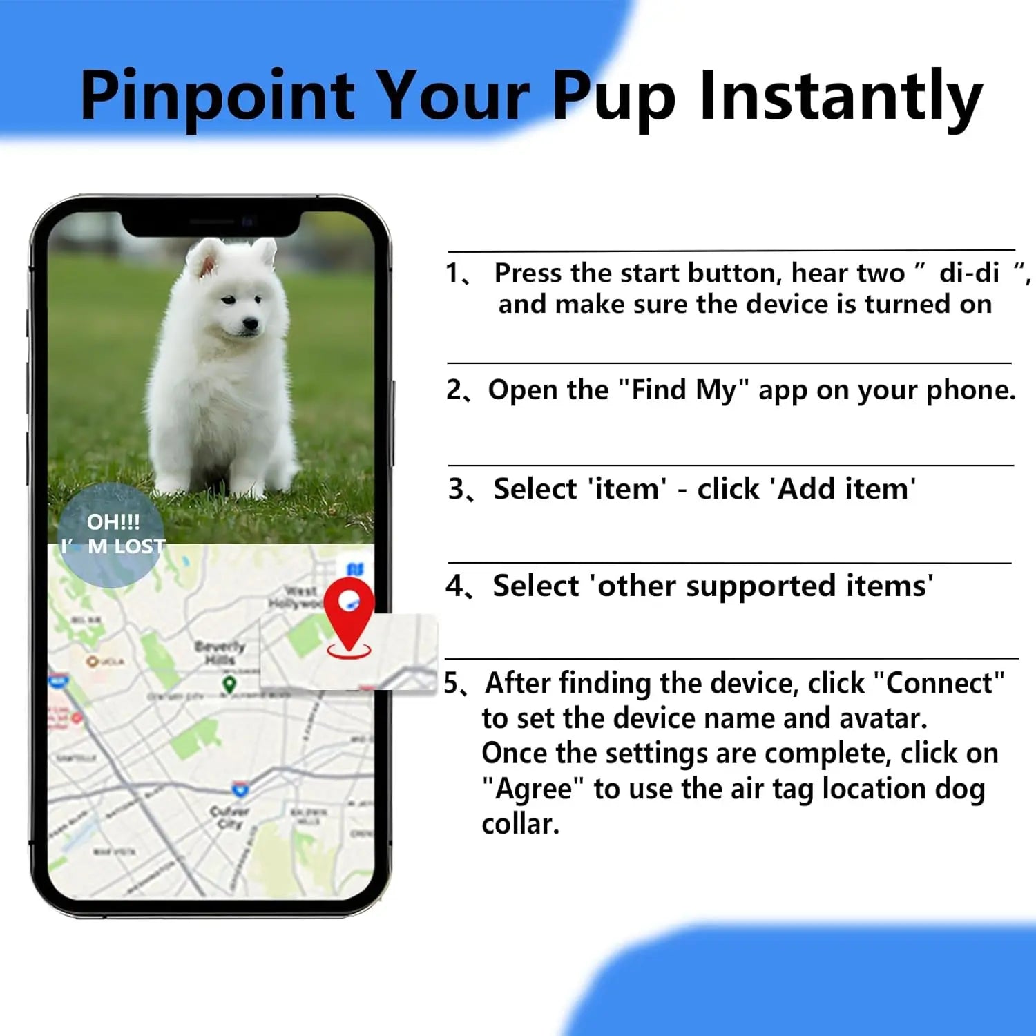 Our Smart GPS Dog Collar works seamlessly with Apple’s Find My network — giving you real-time location tracking across the globe. No Bluetooth limits, no monthly subscription. Just peace of mind.